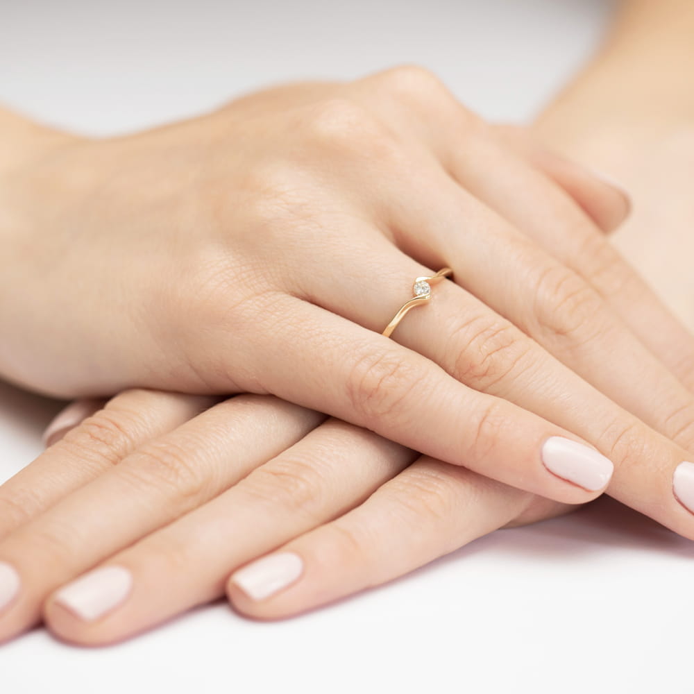 Pierścionek wykonany ze złota próby 585 z diamentem naturalnym, idealny jako pierścionek zaręczynowy.