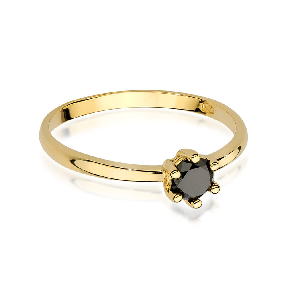Pierścionek wykonany ze złota próby 585 z czarnym brylantem, idealny jako pierścionek zaręczynowy.